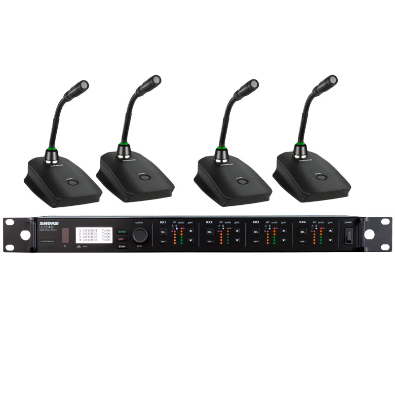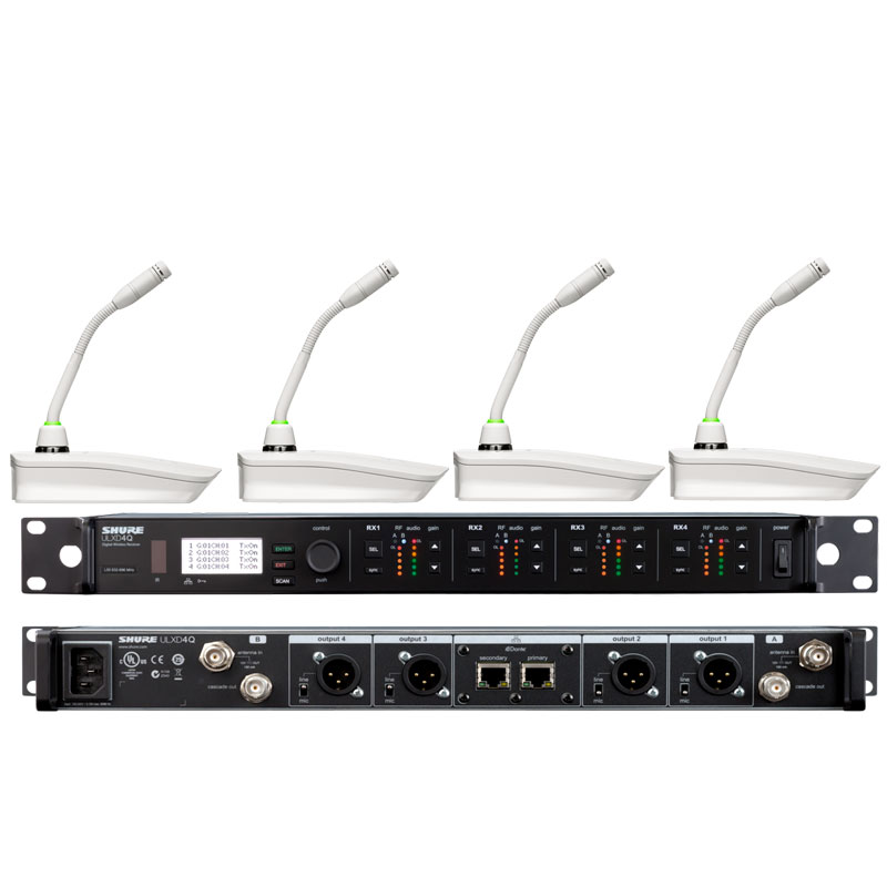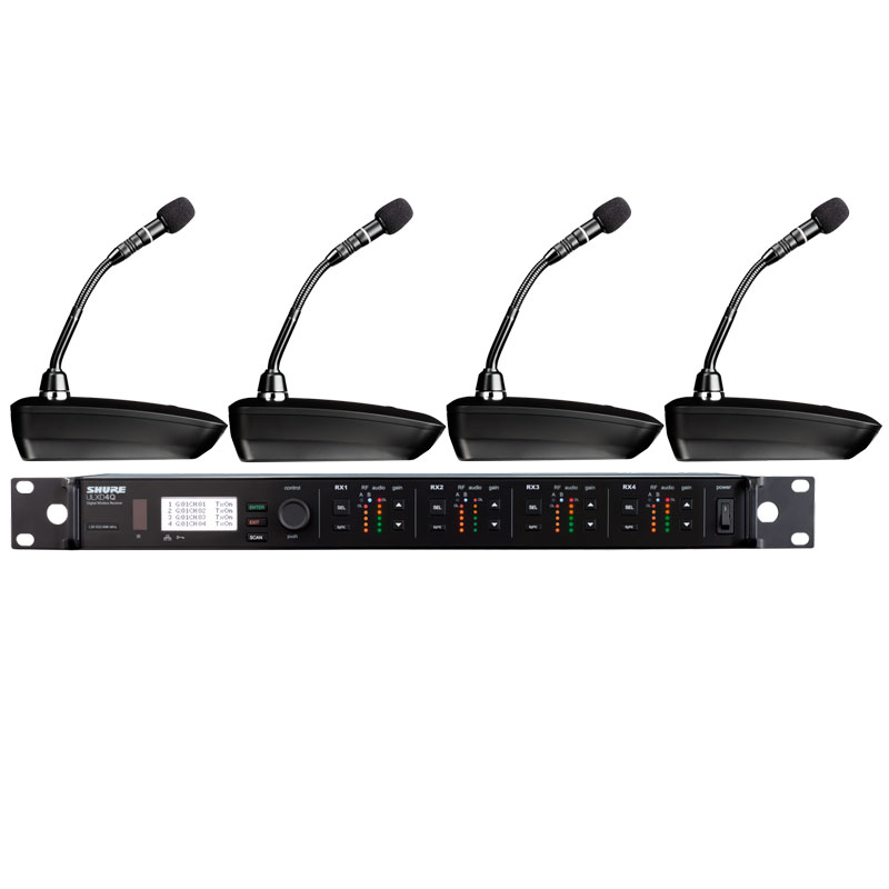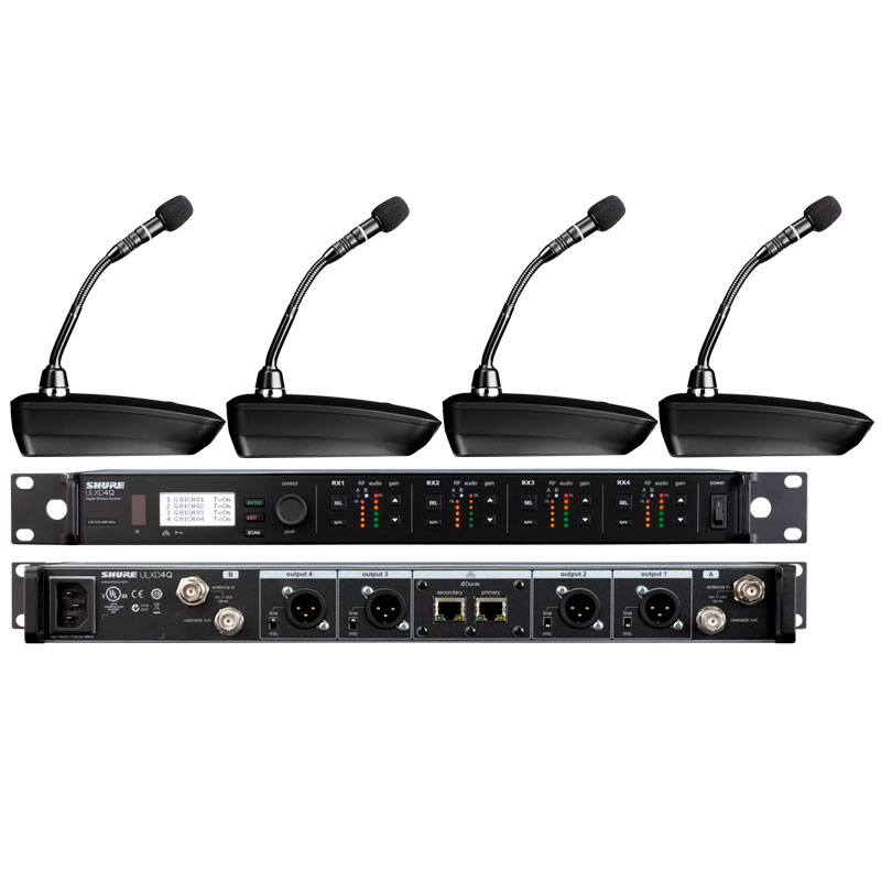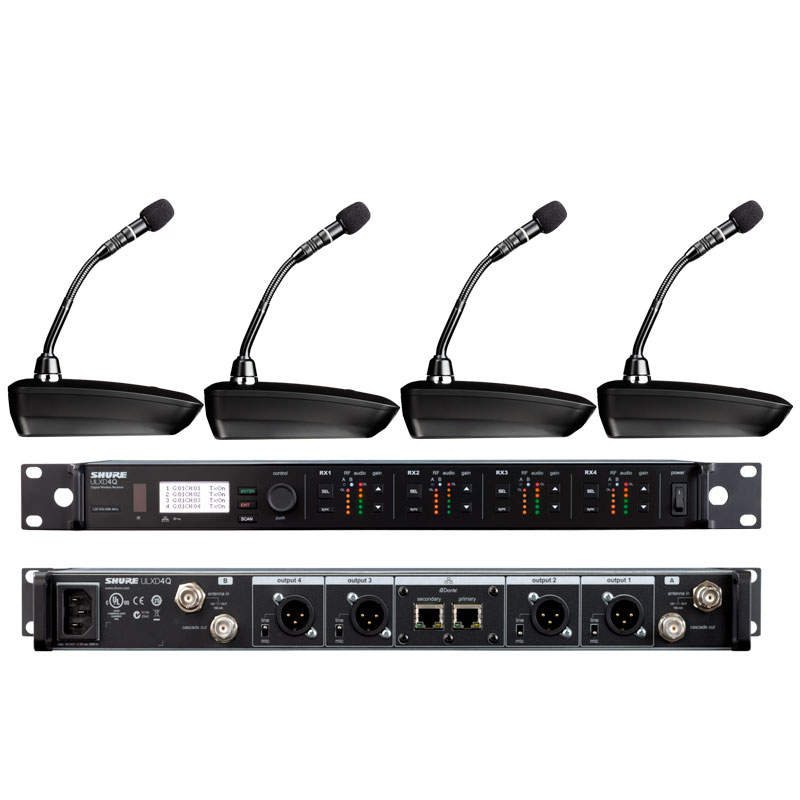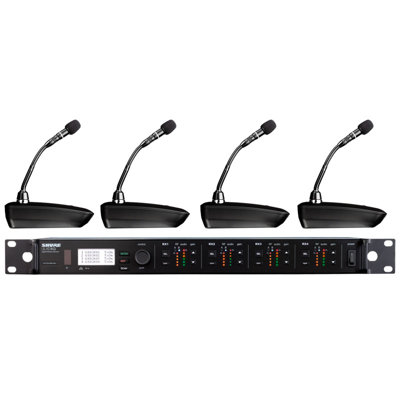Shure ULXD84Q/MX405L 舒尔一拖四无线数字会议鹅颈话筒 四通道无线数字鹅颈话筒 一拖四无线会议话筒