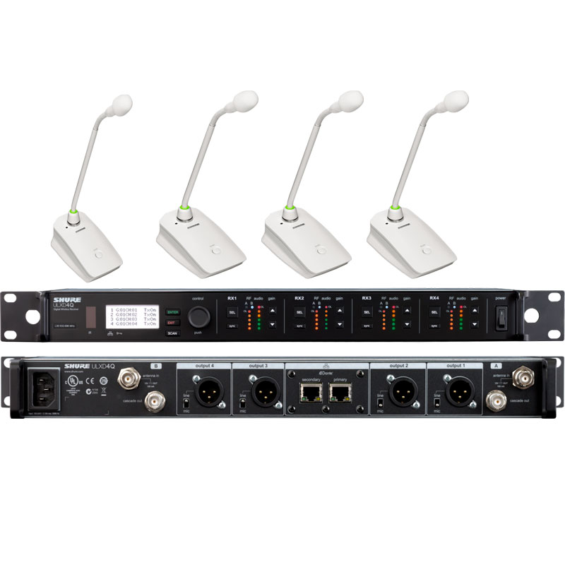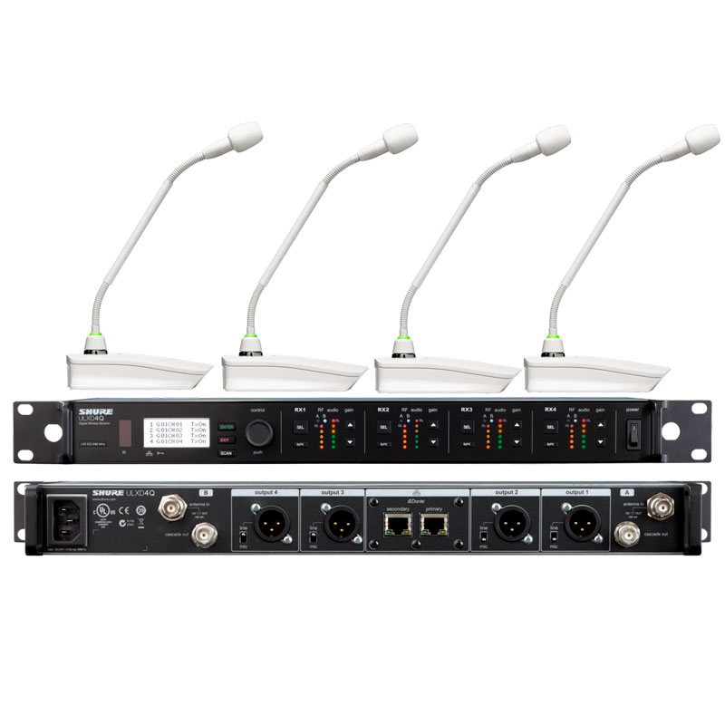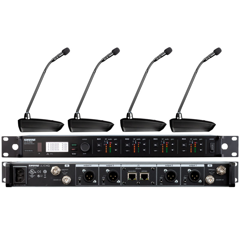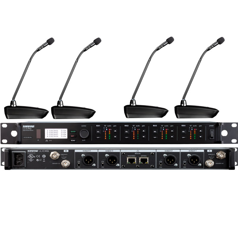 Shure ULXD84Q/MX410 舒尔一拖四无线数字会议话筒 四通道无线数字鹅颈话筒 一拖四无线会议话筒