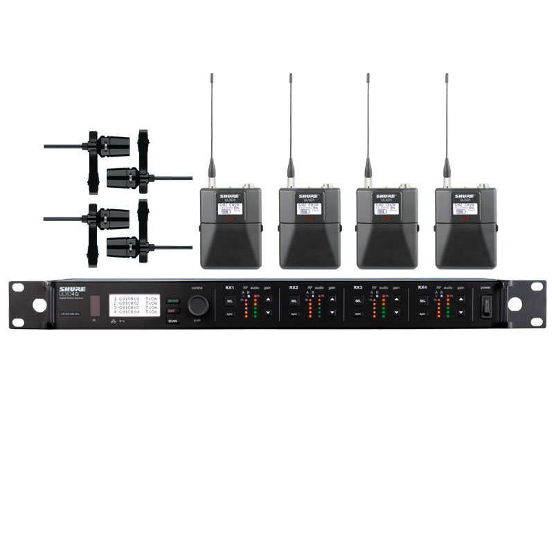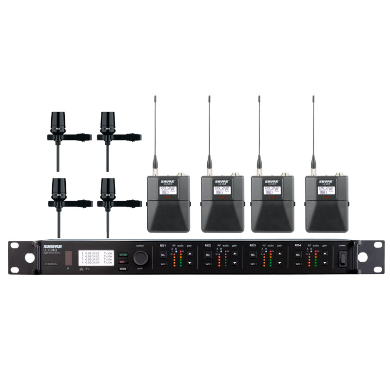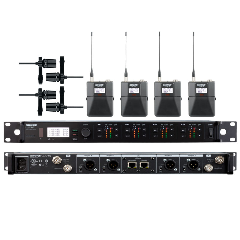 Shure ULXD14Q/CVL 舒尔一拖四无线领夹话筒 四通道无线领夹式电容话筒