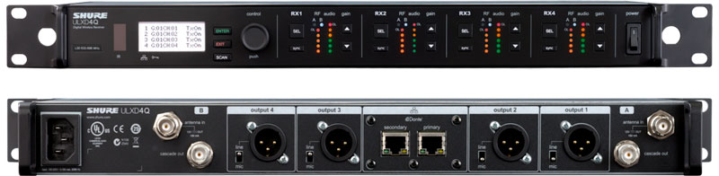 四通道数字无线接收机,集无与伦比音质、射频信号稳定性和先进的设置功能于一体,耐用的1U机架式结构设计,品质非凡.24比特/48kHz 的数字音频可准确的原音重现,超过其它任何系统。具有平坦响应的20Hz-20KHz的频率响应范围。大于120 dB 的动态范围带来了极佳的信噪比特性。可加密技术,高级加密标准(AES-256)遵守美国国家标准与技术研究院(NIST)发布的FIPS-197标准。高达72MHz 调谐带宽(与区域有关)。单一6MHz电视频道的可兼容发射机多达14个通道(8MHz电视频道可兼容17个)。单一频带上可兼容60多个通道。使用标准的偶极天线,可传输稳定而且无声染色的音频载波信号超过100米可视范围。高达60dB的可调系统增益。发射机和接收机上有可调节对比度和亮度的LCD屏。发射机和接收机具有坚固耐用的金属外壳。通过以太网联网,进行多个接收机的联网控制、WWB6集成和AMX/Crestron控制。通过Axient?频谱管理器支持频率协调