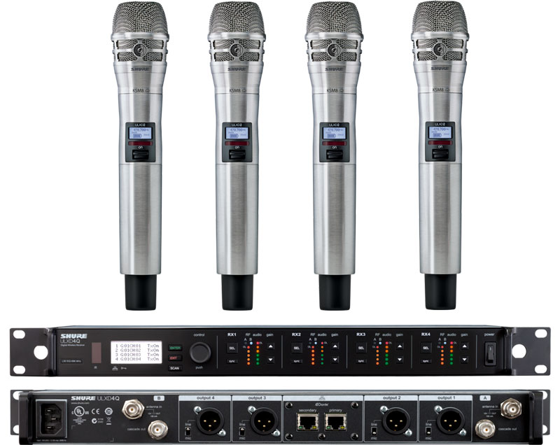 Shure ULXD24Q/KSM8 舒尔一拖四手持无线麦克风 四通道手持无线话筒