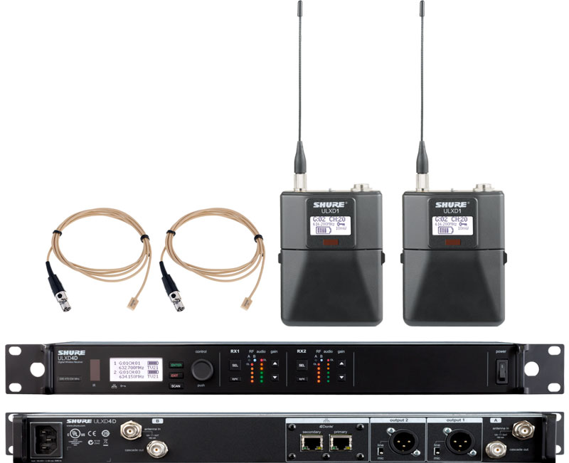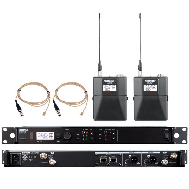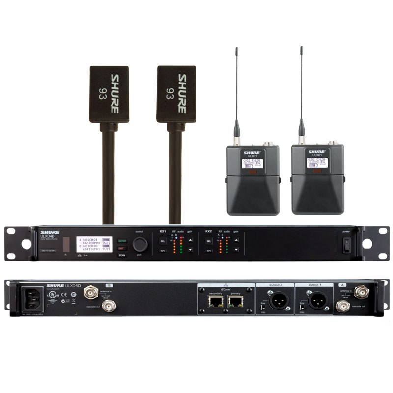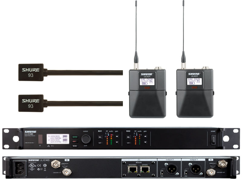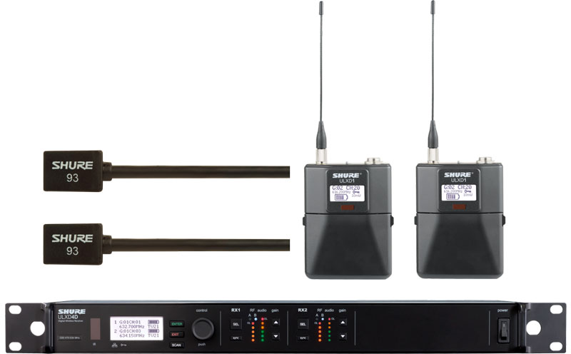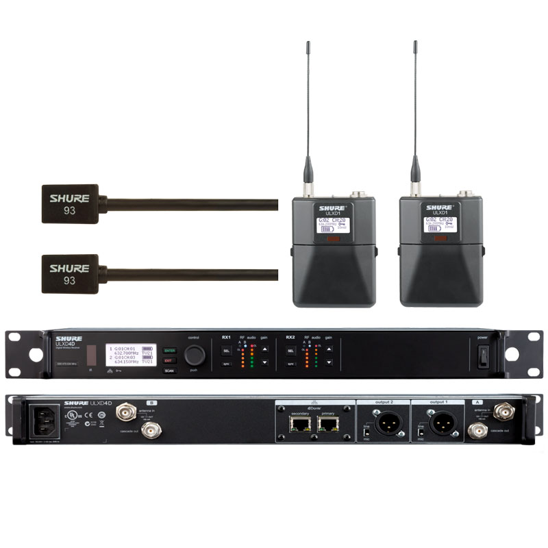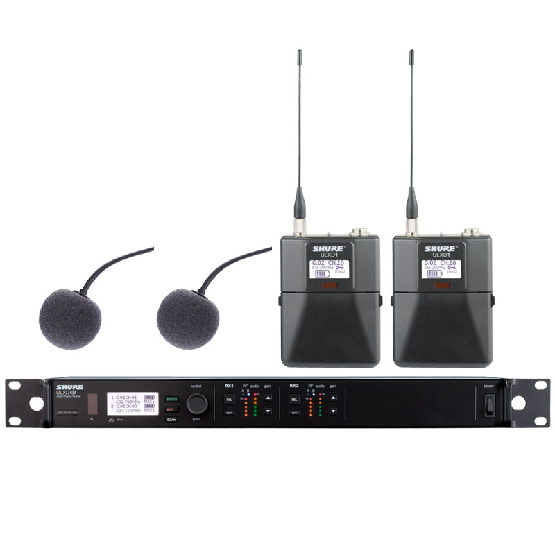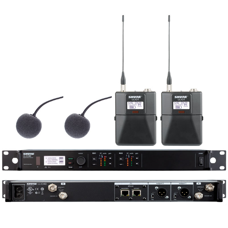 SHURE 舒尔ULXD14D+ULXD1/WL93 一拖二领夹无线话筒 一拖二领夹无线麦克风 可以满足不同功能要求需要,部分型号如下: ULXD4D+ULXD1+WL93,更多配置系统型号请致电我们