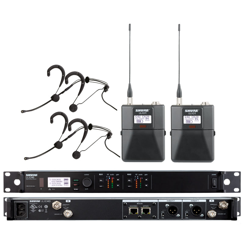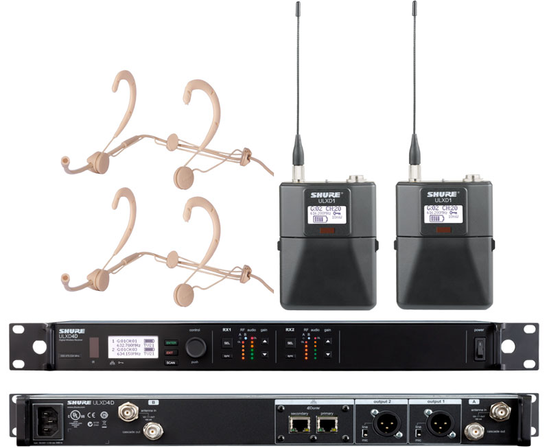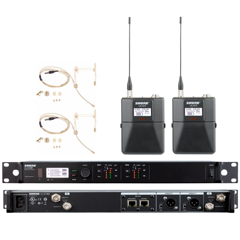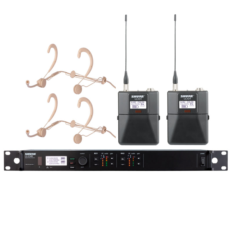 SHURE 舒尔ULXD14D+ULXD1/WBH53 一拖二头戴无线话筒 一拖二头戴无线麦克风 可以满足不同功能要求需要,部分型号如下: ULXD4D+ULXD1+WBH53更多配置系统型号请致电我们