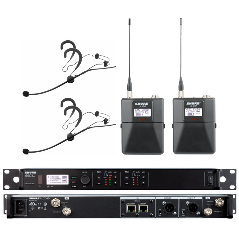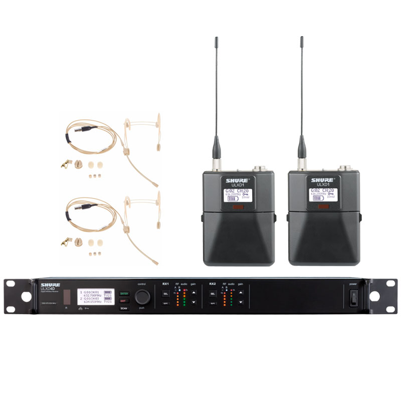 Shure ULXD14D/WBH53 舒尔一拖二头戴无线话筒 双通道无线头戴麦克风