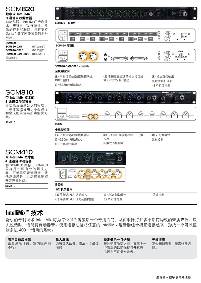 SCM820 数字式IntelliMix?自动混音器 + 数字信号处理器