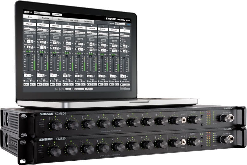 双通道 SCM820 混音器,支持网络浏览器式图形用户界面。