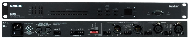 双通道。 强大的处理器。 舒尔DFR已迅速成为有效抑制反馈的业内标准。 DFR22提供经济且功能全面的2x2音频处理器和软件,享有极高声誉。 其功能远不止反馈抑制, 对于不同的任务而言,它是您所需的唯一音频处理器。