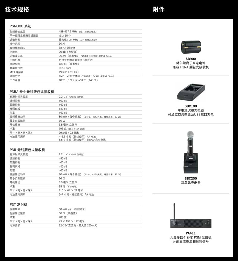 P3RA是一款无线立体声腰包式接收机,与PSM300个人监听系统配合使用。