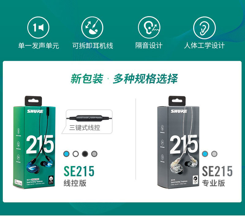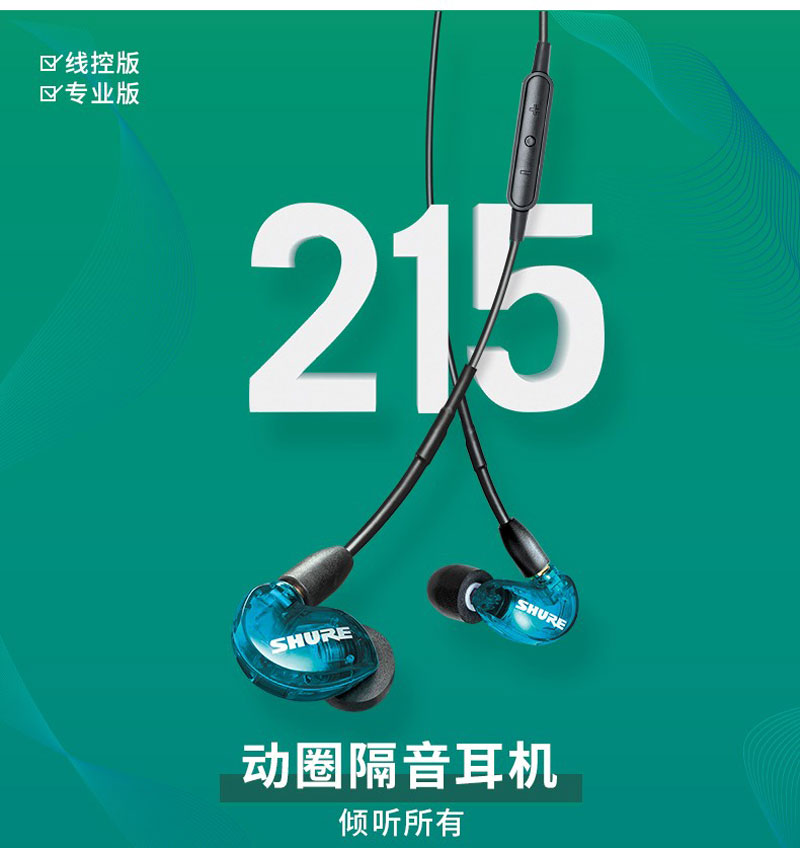 Shure SE215 舒尔入耳式音乐耳机 动圈隔音耳机 HIFI音乐耳机 强劲重低音耳机 双耳挂耳式 入耳式耳机 运动耳机 立体声耳机 隔音耳机 入耳式微型隔音动圈隔音耳机