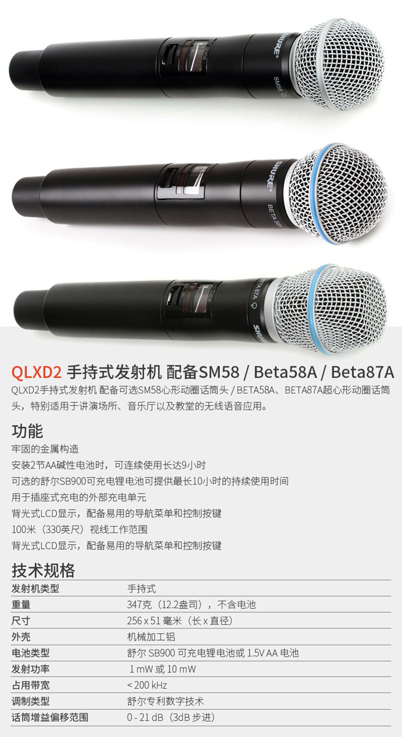 SM58话筒配备QLXD2手持式发射机