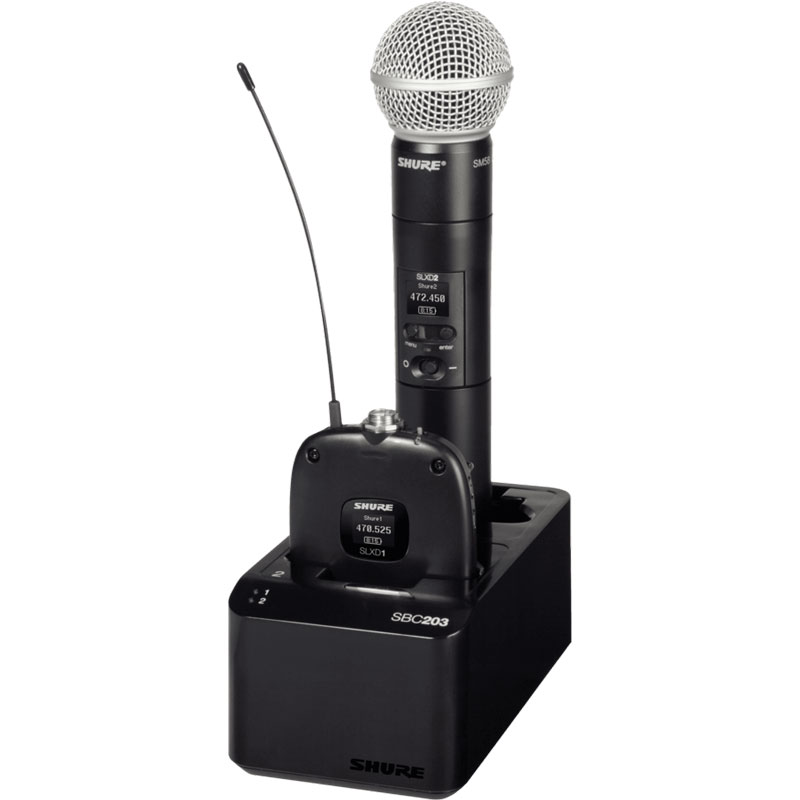 SLXD14/98H 配有SLXD1腰包式发射机和Beta? 98H/C微型乐器话筒的无线系统 SLXD24D/SM58 配有2个SLXD2/SM58手持式发射机的双通道无线系统