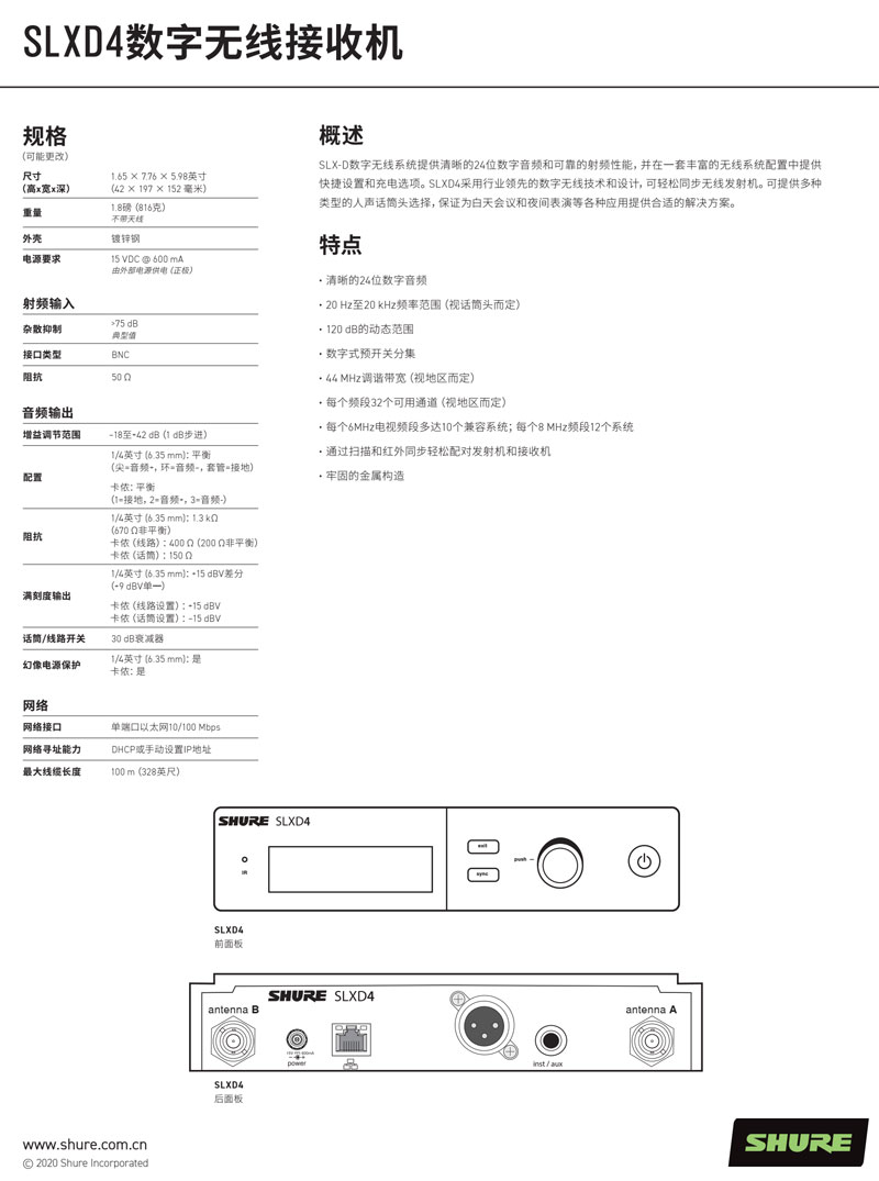 从报告厅到现场演出,SLXD4接收机是确保自信的演讲和演出的理想之选。