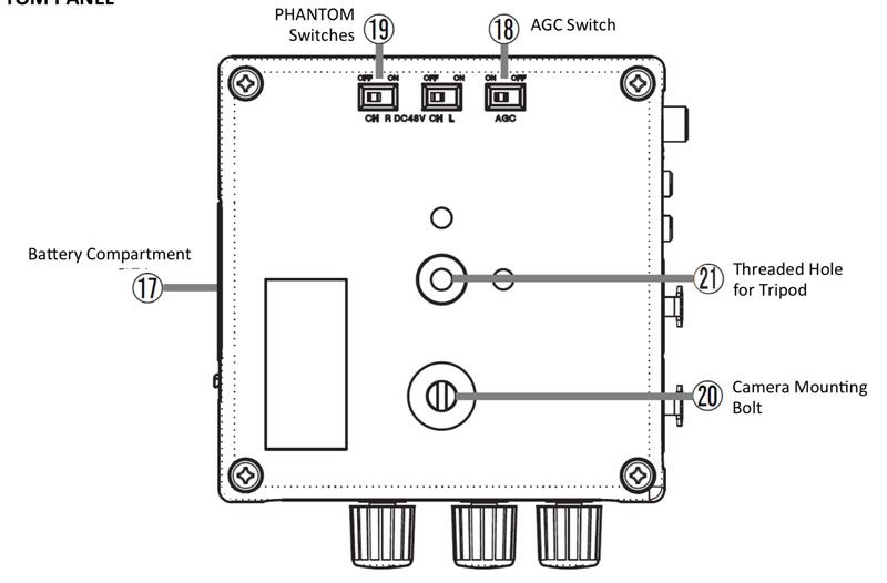 3.5mmOUTPUT插孔,3.5mm耳机监听输出,具有播放检测RCA输入,幻象电源,摄像机的AGC失效控制,