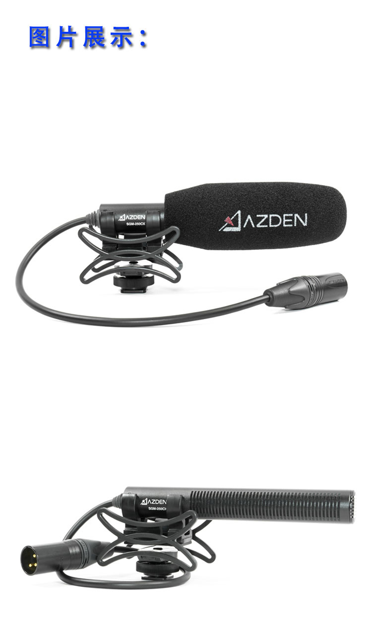Azden SGM-250CX 阿兹丹小型电影机麦克风 驻极体传声器 超心型电容话筒 驻极体电容器话筒 枪式话筒 专业级电影机麦克风