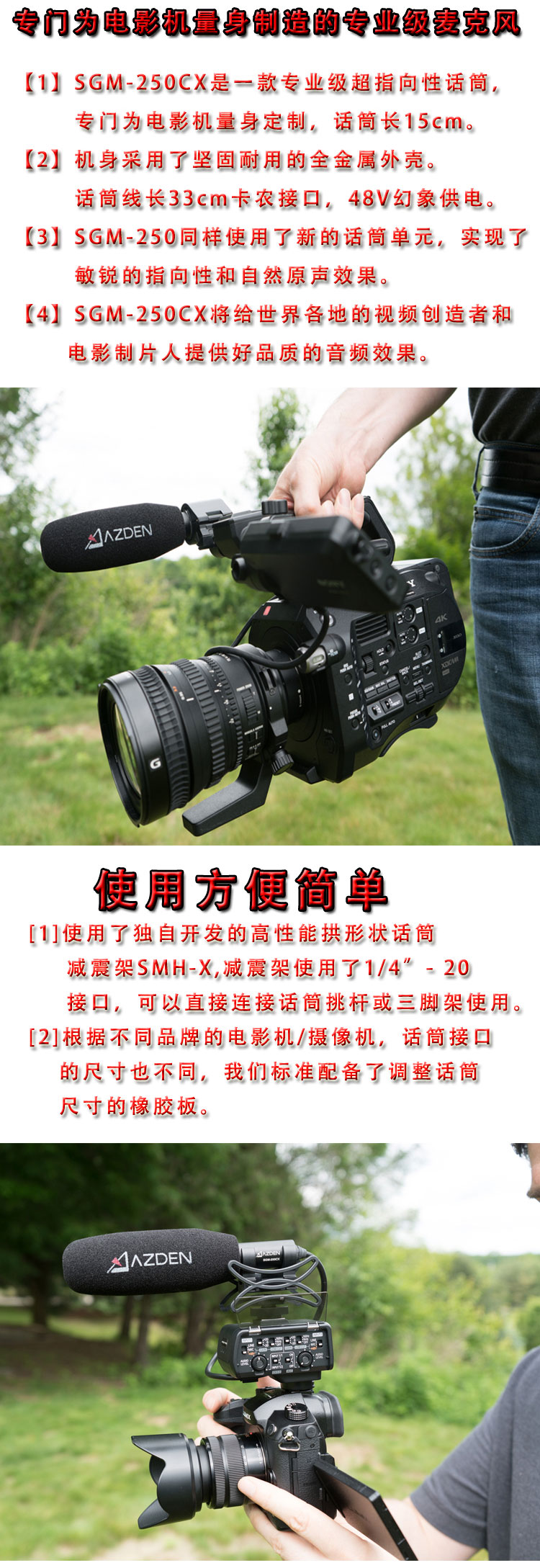 SGM-250CX是日本手工制作的一款专业级超指向性电容话筒。