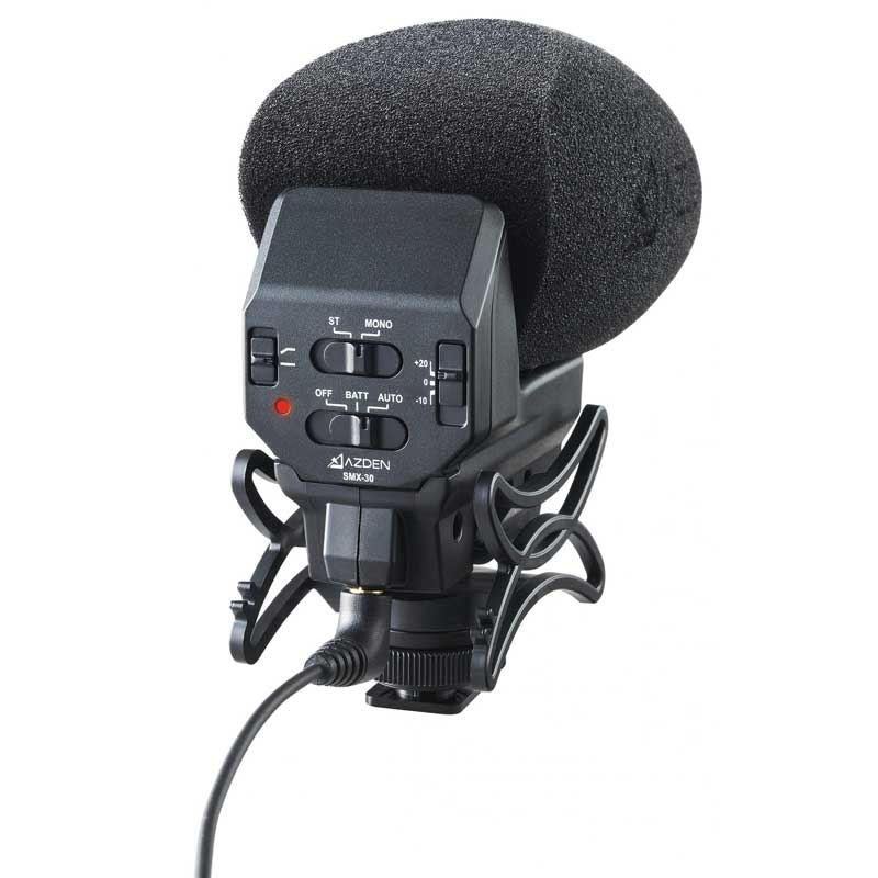 Azden SMX-30Ⅱ 阿兹丹单反相机录音麦克风 数码相机话筒 机头麦 驻极式电容话筒 直播录音 单声道/立体声可切换麦克风