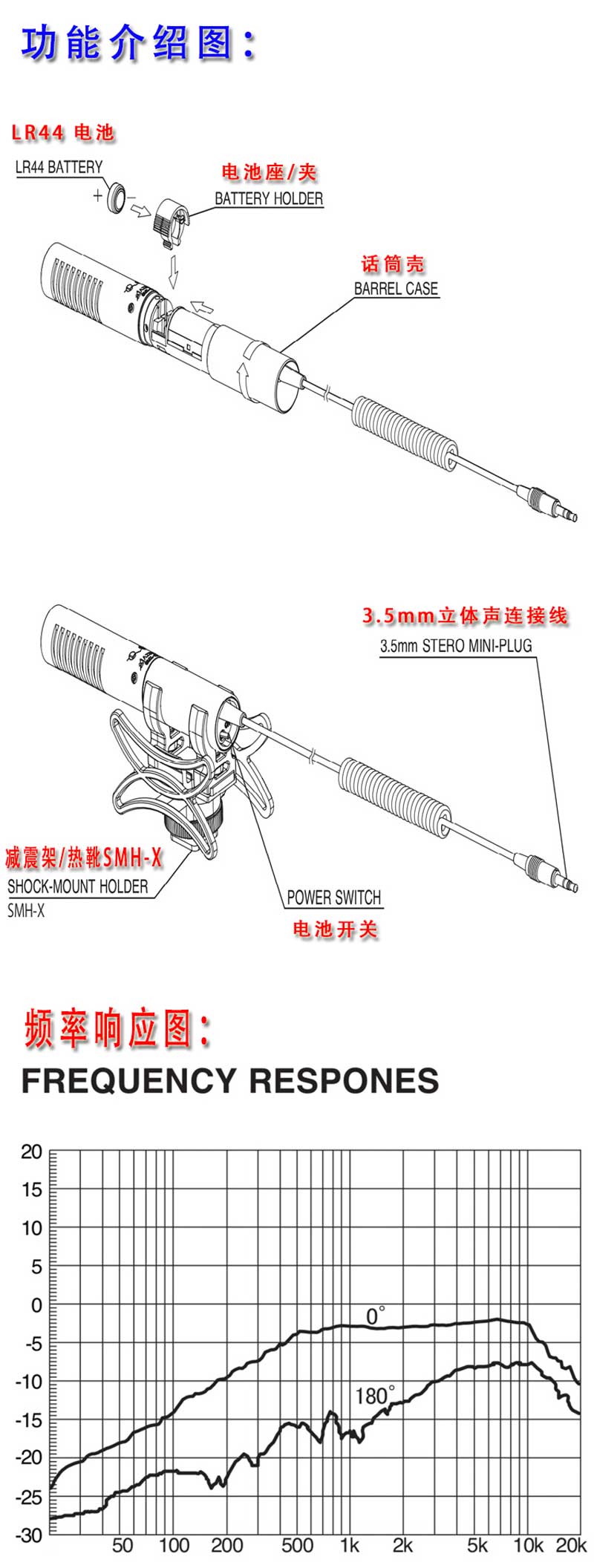 超指向性电容话筒,超小型,超轻量的设计,完美的声音收集效果,适合用于单反相机。