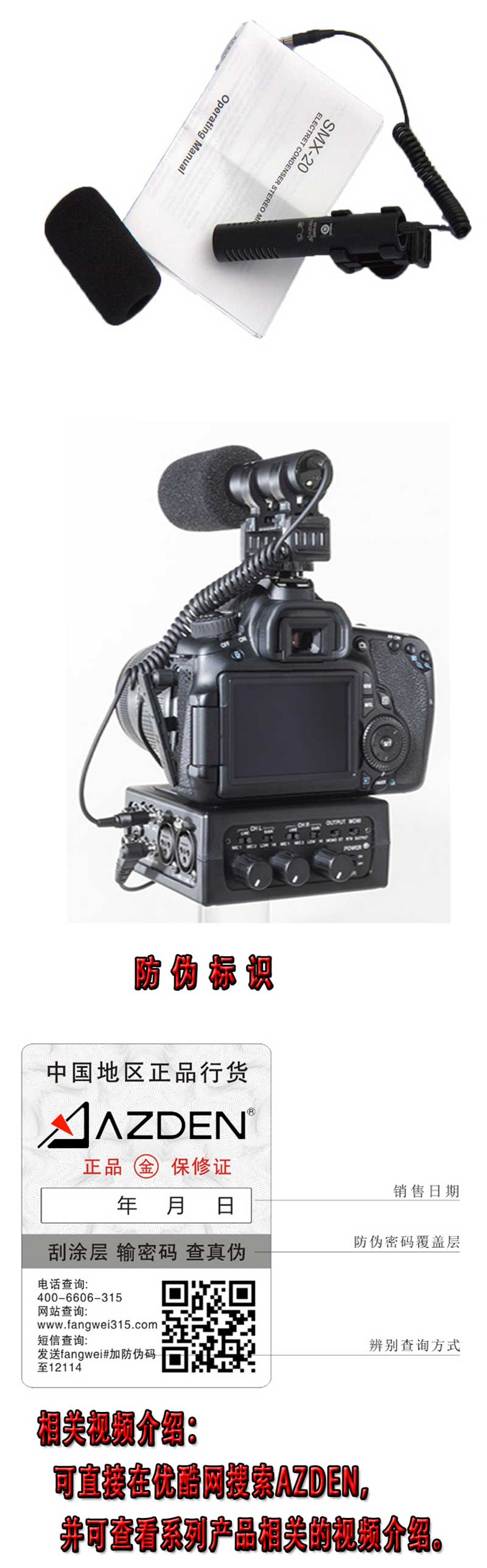 日本 AZDEN SMX-20 阿兹丹 单反相机 录音麦克风 机头麦 立体声