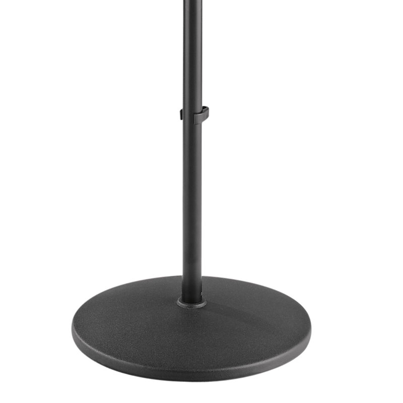 重要的立场!较大的管道达到1.7米的高度,因此非常适合较高的人。时尚的离合器提供用户友好的高度调节,并且易于固定到位。非常重的圆形铸铁底座直径为300 mm,使支架具有出色的稳定性和较小的占地面积。圆形橡胶插入环可过滤脚踏声音并减少不需要的声音的传播。支架重6.2千克,配有可伸缩的吊杆。