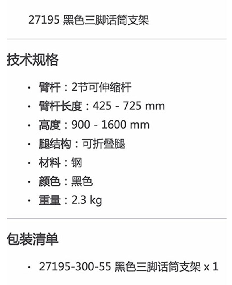 黑色 27195-300-55 麦克风支架(黑色)