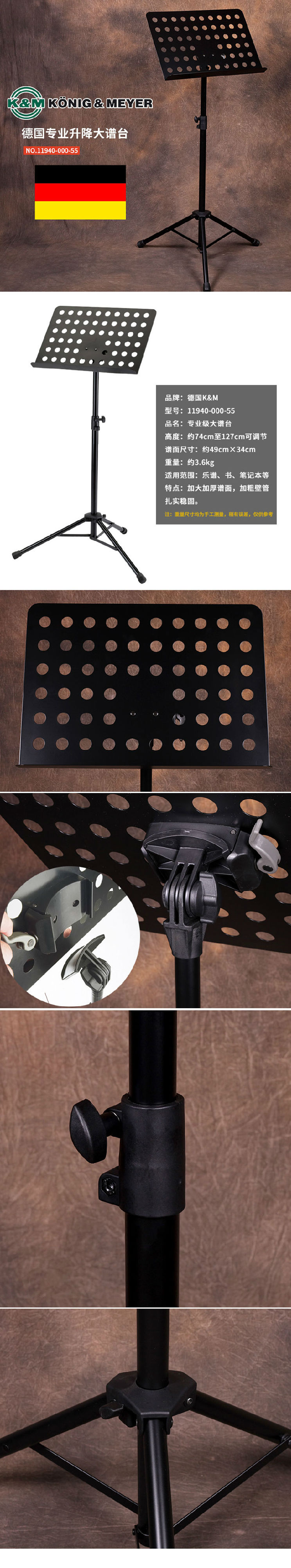 K&M 11940-000-55 乐团乐谱架 德国K&M乐谱支架 专业乐器大谱台 K&M升降折叠吉他二胡乐谱支架 曲谱架子