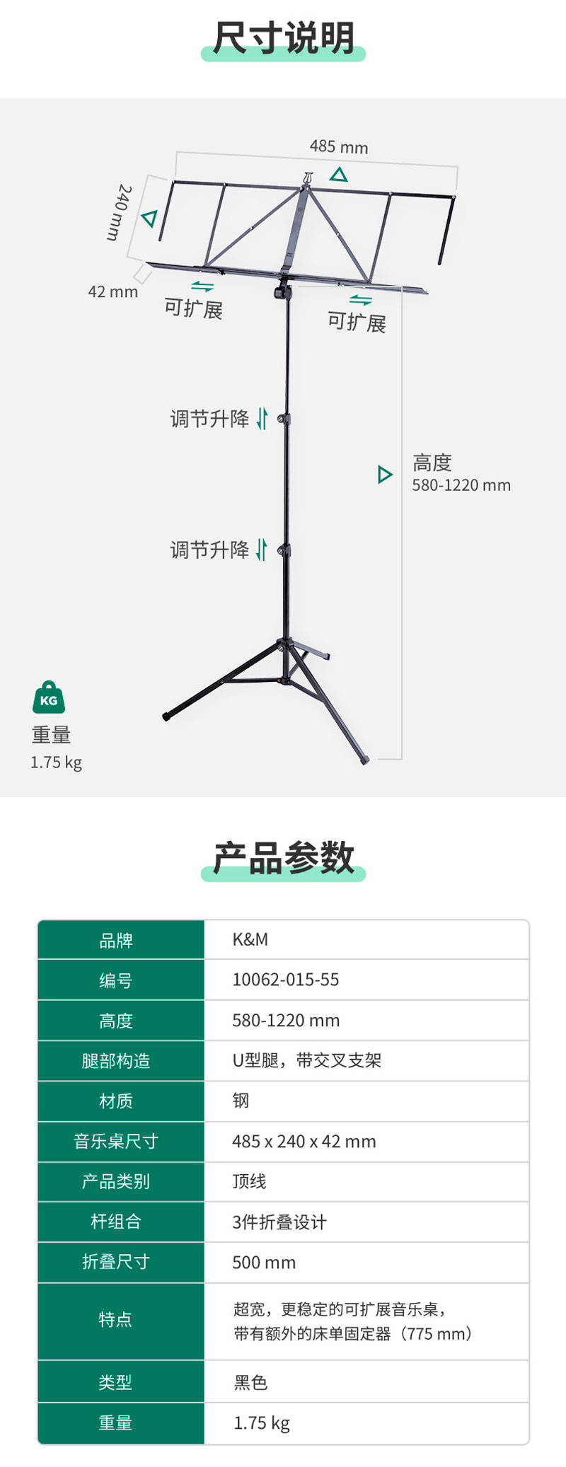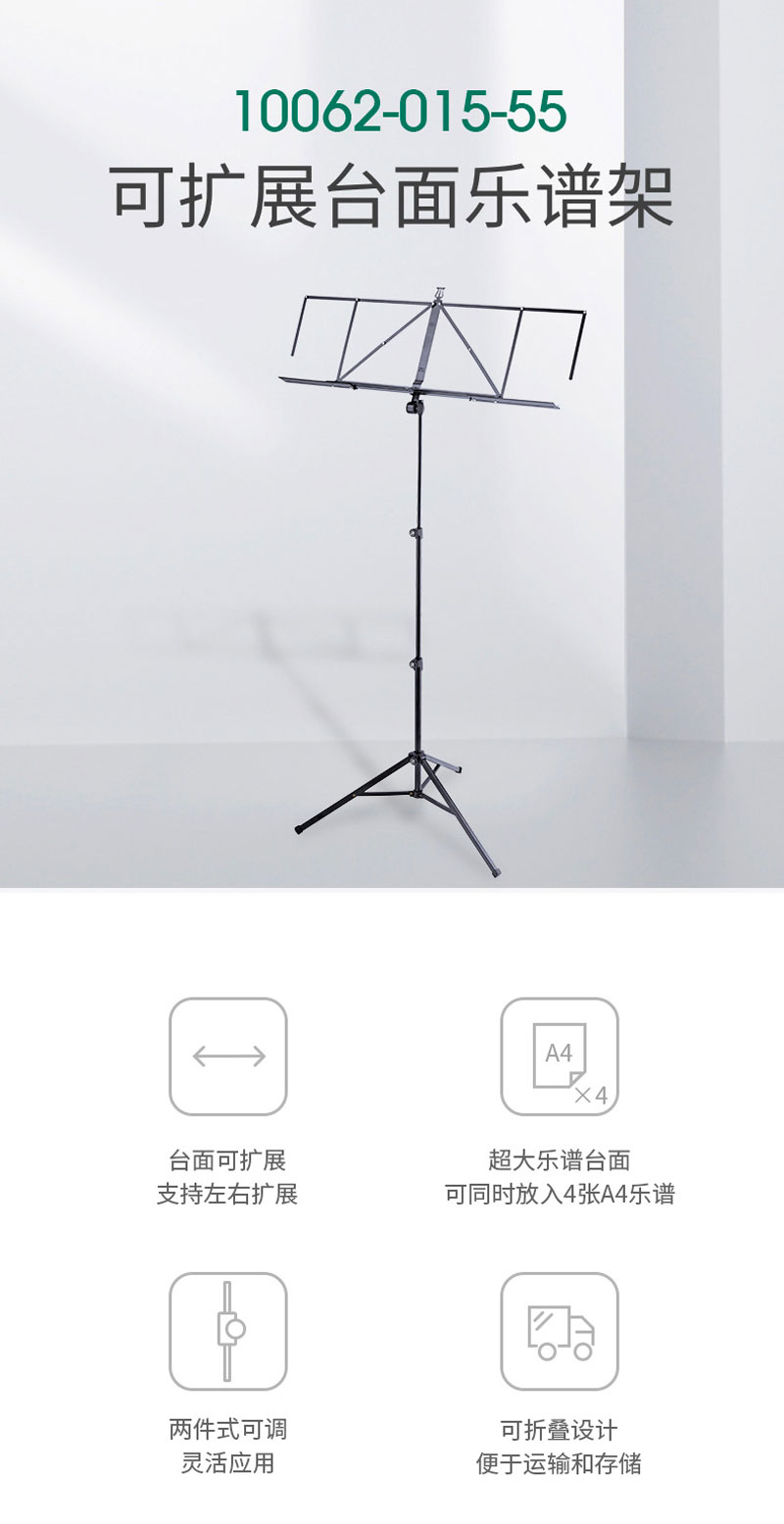 K&M 10062-015-55 可伸展乐谱架 乐团乐谱架 德国K&M乐谱支架 乐器大谱台 K&M升降折叠吉他二胡乐谱支架 曲谱架子