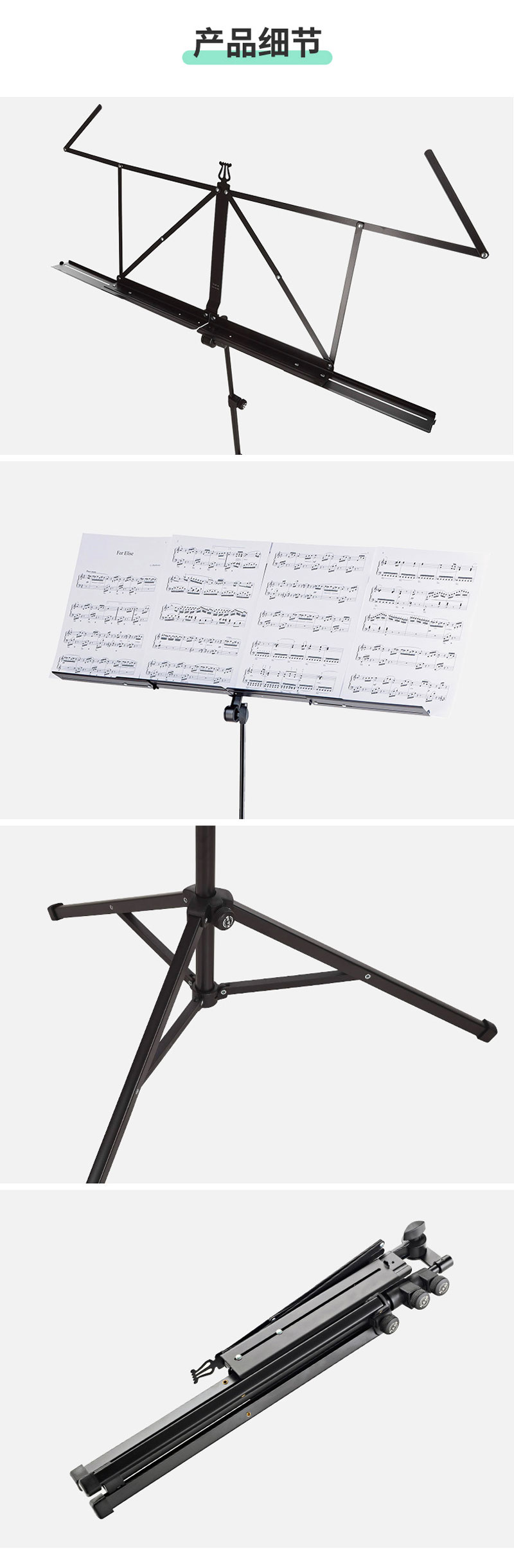 特殊功能: 超宽,更稳定的可扩展音乐桌,带有额外的床单固定器(775毫米)