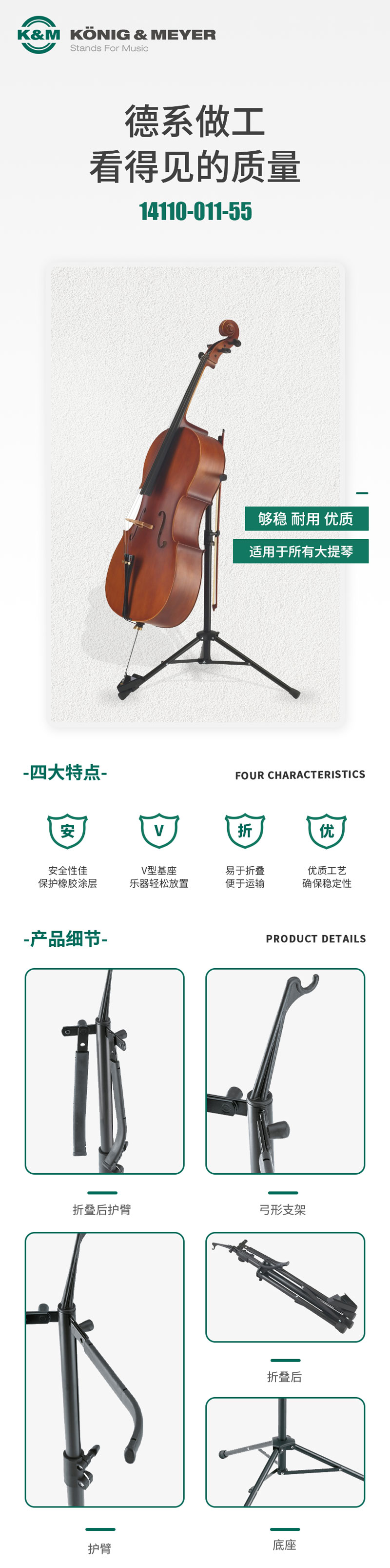 K&M 14110-011-55 大提琴支架 德国K&M乐器支架 大提琴支架 琴架 大提琴K&M支架 乐队乐团演出排练专用 141/1大提琴架