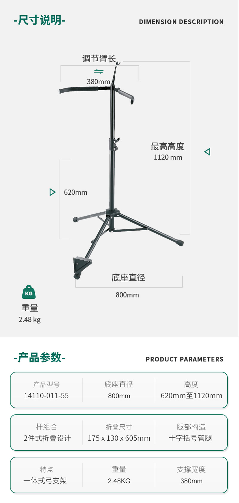 ②稳定的支撑臂具有保护性橡胶涂层,可以轻松快速地折叠运输;