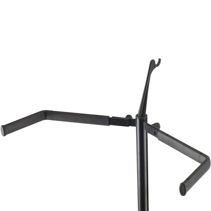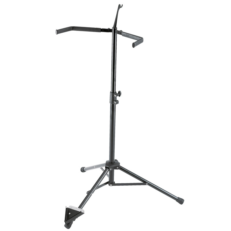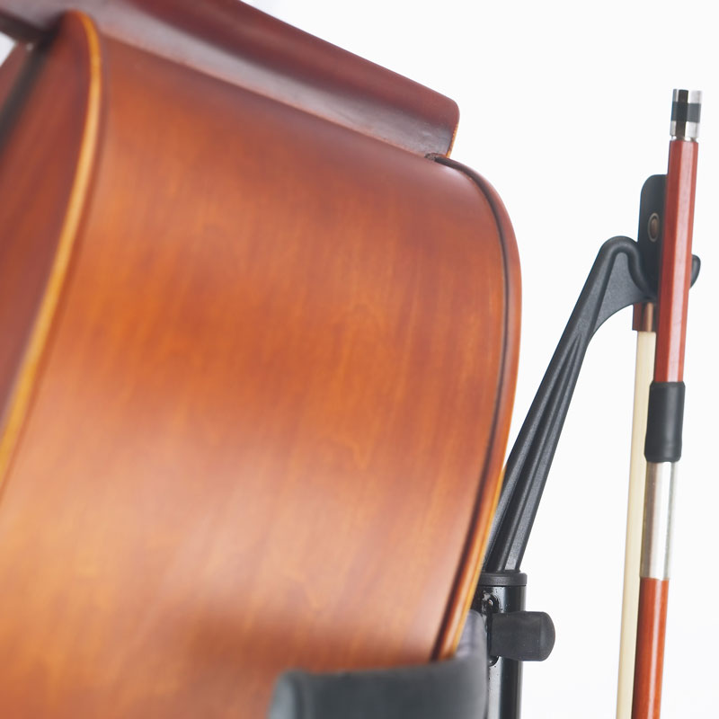 The 14100 double bass stand is a high quality product. Its stable support arms have a protective rubber coating and the stand is easy to fold for transport. The newly developed V-shaped base for the endpin means it is easy to place the instrument securely in the stand. The quality workmanship and robust materials guarantee stability and a long life. The integrated bow holder is a very practical addition.