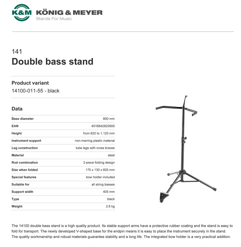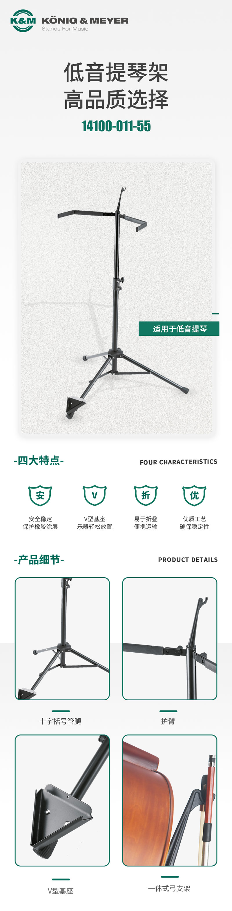 K&M 14100-011-55 低音提琴支架 大贝司支架 德国K&M乐器支架 低音提琴架 乐队乐团演出排练专用 琴架K&M低音提琴支架 倍大提琴乐团专用琴架