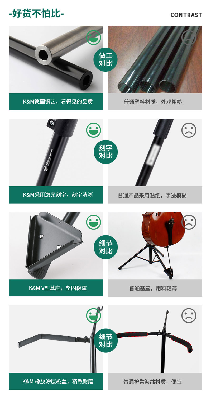 德国进口K&M支架 K?nig & Meyer 所有德国K&M话筒支架,全部批发,数量多价格更优惠;由于K&M出货量大,有些库存并没有那么多,请联系致电我们确定;K&M德国进口走的海运时间会长些,如需要订货,订货周期为8-12周左右。(官网上能查到的型号都可订货,查询请联系客服)由于支架重,外包装纸盒薄容易破损,所有的K&M 支架不退不换,介意者勿购买!