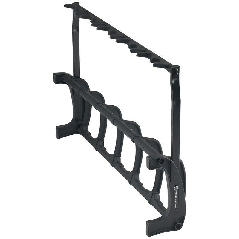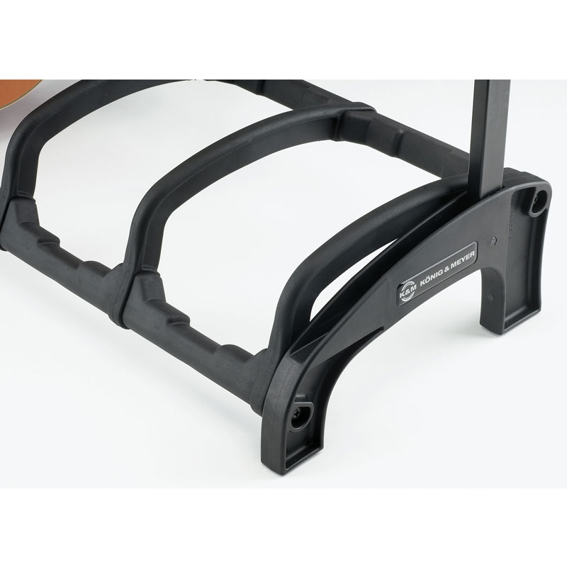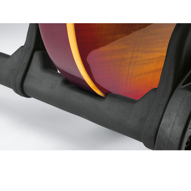 Special features: Protective bars prevent damage from bumps or knocking; additional slots for electric guitars; holds the guitar’s neck without touching the strings; integrated pick holders
