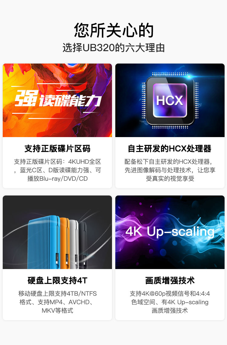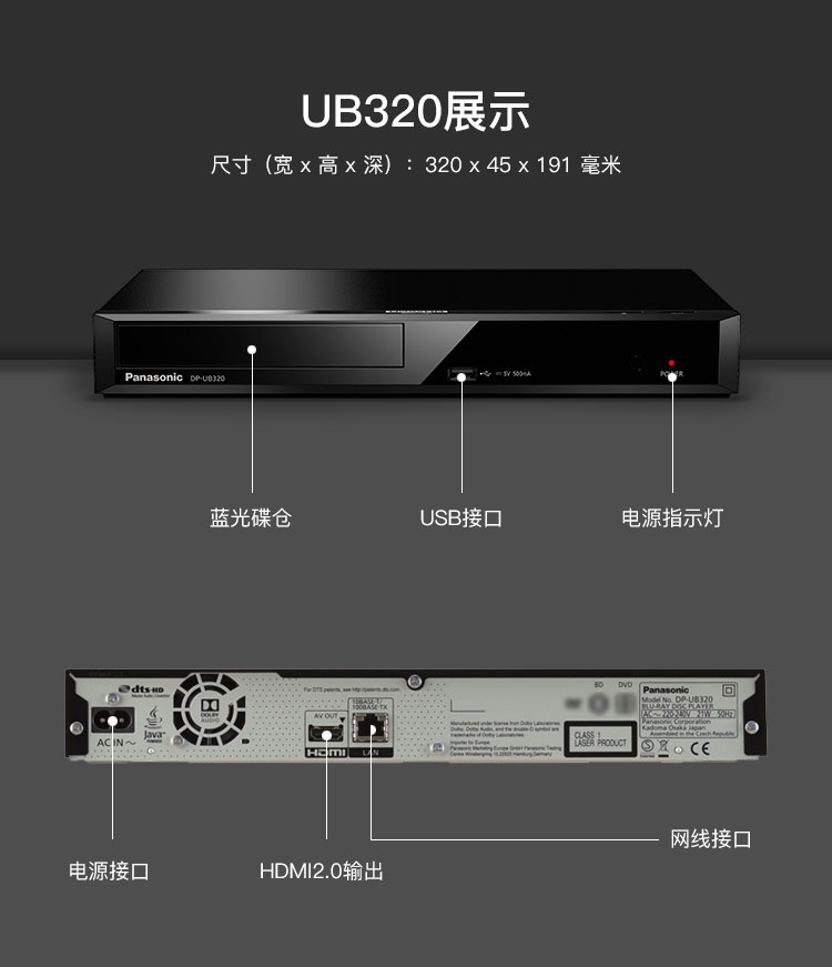 Panasonic 松下 UB320 超高清播放机 4K高清蓝光DVD影碟机硬盘播放器