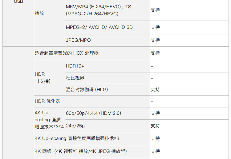 4K 网络(4K 视频*? 播放/4K JPEG 播放*3) 支持