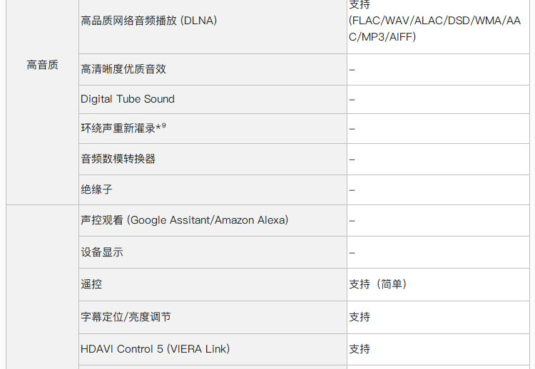 高品质网络音频播放 (DLNA) 支持 *8 (FLAC/ WAV/ ALAC/ AIFF/ DSD/ WMA/ AAC/ MP3)