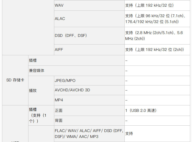 播放 FLAC/ WAV/ ALAC/ AIFF/ DSD (DFF, DSF)/ WMA/ AAC/ MP3 支持