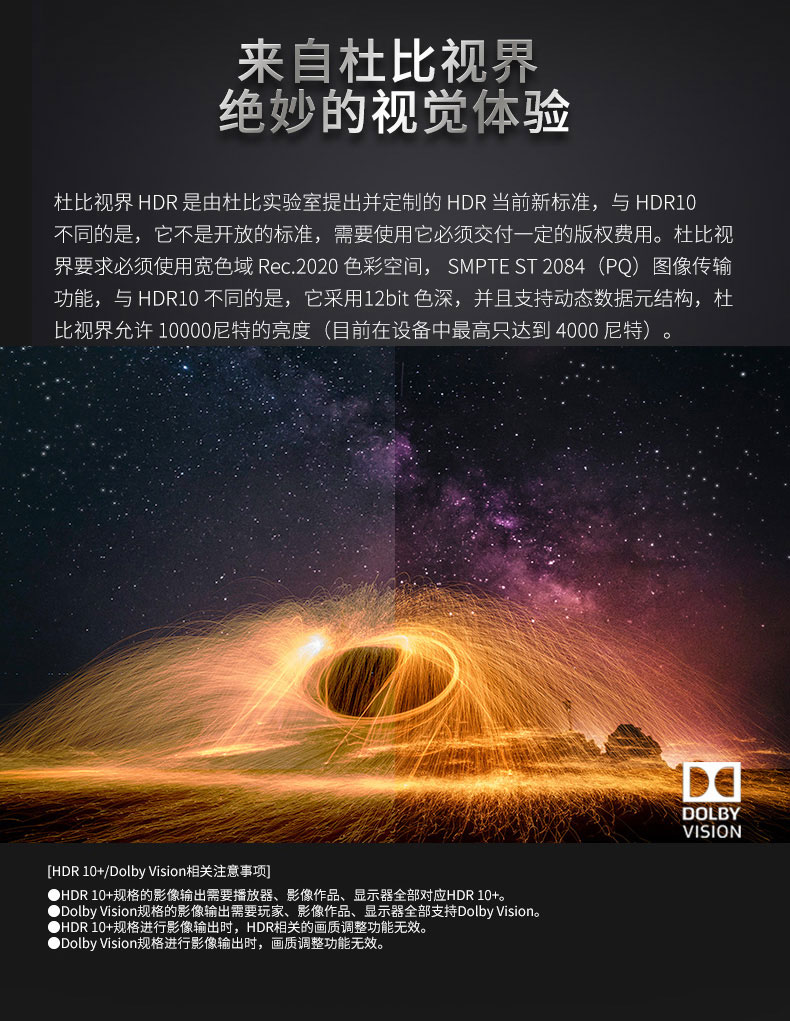 全面强大的兼容能力,支持HDR10+、DOLBY VISION(杜比视界)、HDR10、HLG