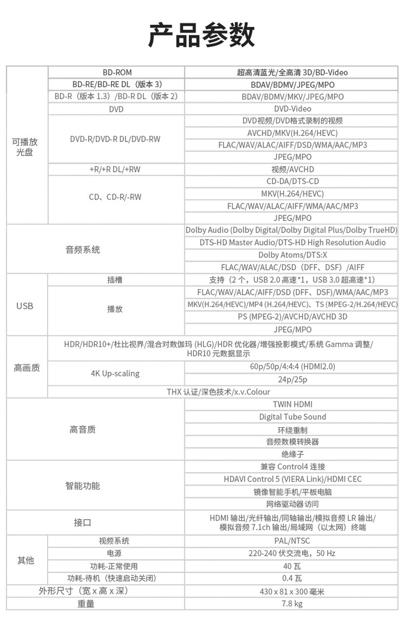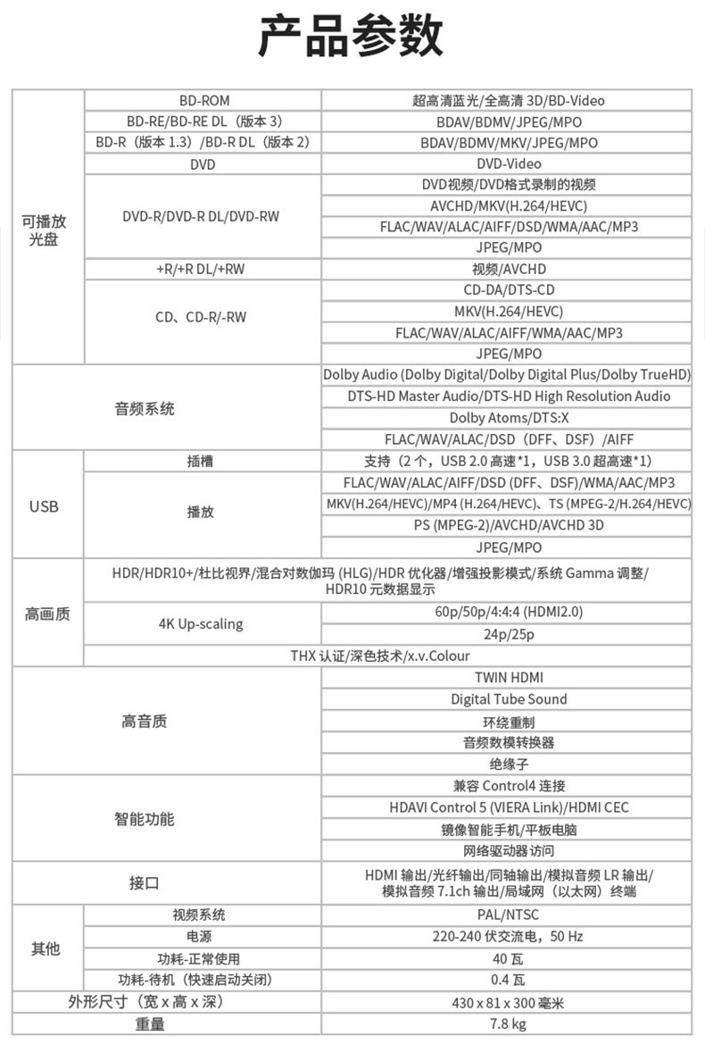 Panasonic 松下DP-UB9000GK 4K超高清蓝光播放器