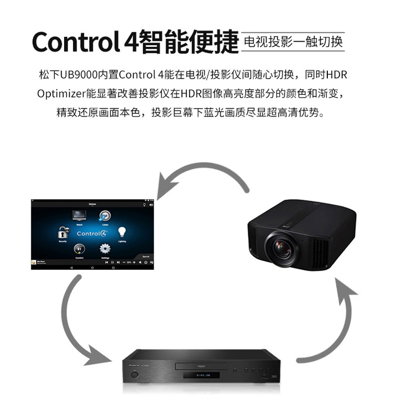 内置Contrl4智能便捷,能在电视/投影仪间随心切换