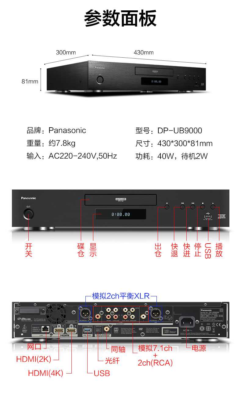 松下 DP-UB9000GK 蓝光高清播放机 超高清蓝光播放器 高端3D蓝光播放器 蓝光DVD播放器 4K超高清影碟机 4K超高清播放器 4K播放机 DVD影碟机 蓝光播放机 蓝光机3d播放器 影碟机
