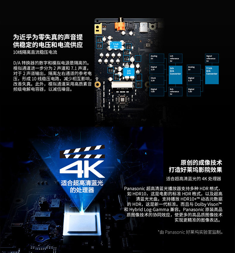 DP-UB9000采用松下自研4K蓝光芯片,拥有自己的4K原创处理技术
