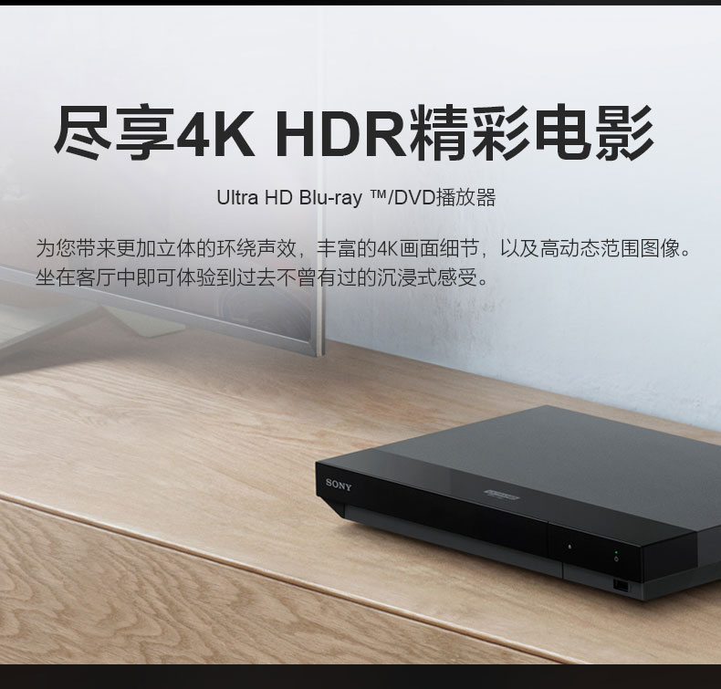 尽享4K HDR精彩电影Ultra HD Blu-ray ?/DVD播放器为您带来更加立体的环绕声效,丰富的4K画面细节,以及高动态范围图像。坐在客
