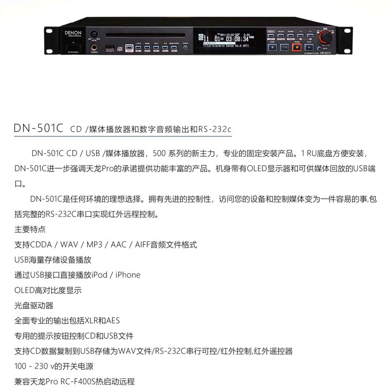 随着DN-501C广播级CD / USB /媒体播放器的推出,进一步加强了500系列 - DENON PROFESSIONAL专业安装的高性价比A / V产品。