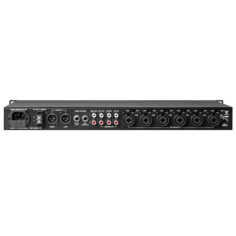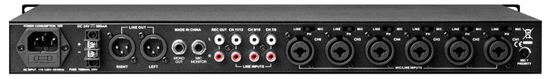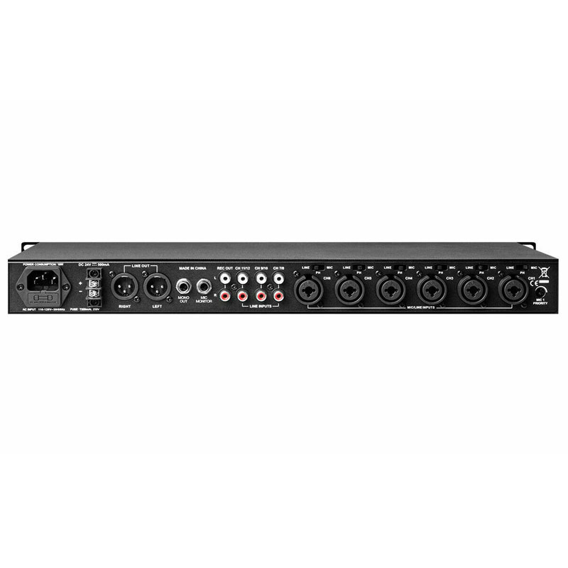 ? 灵敏度:话筒输入: -40 dBu ; 线路输入: 0 dBu ; RCA输入:+10 dBu