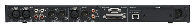 作为模拟输入与输出,配备了XLR平衡输入和输出,RCA非平衡输入和输出。此外,数字输入和输出迎合AES/EBU和S/PDIF,使用适当的格式连接到其它设备上,例如混音器。