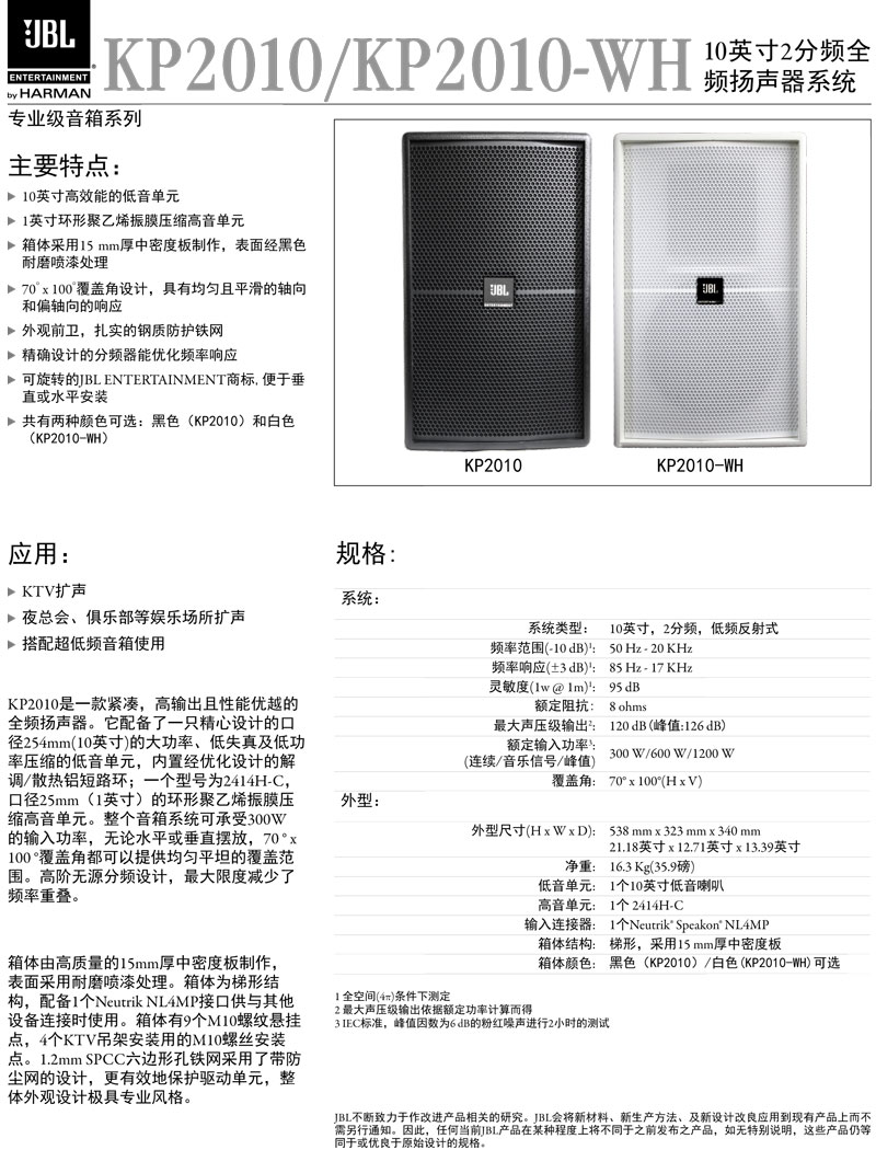 JBL KP2010 10英寸2分频全频扬声器系统