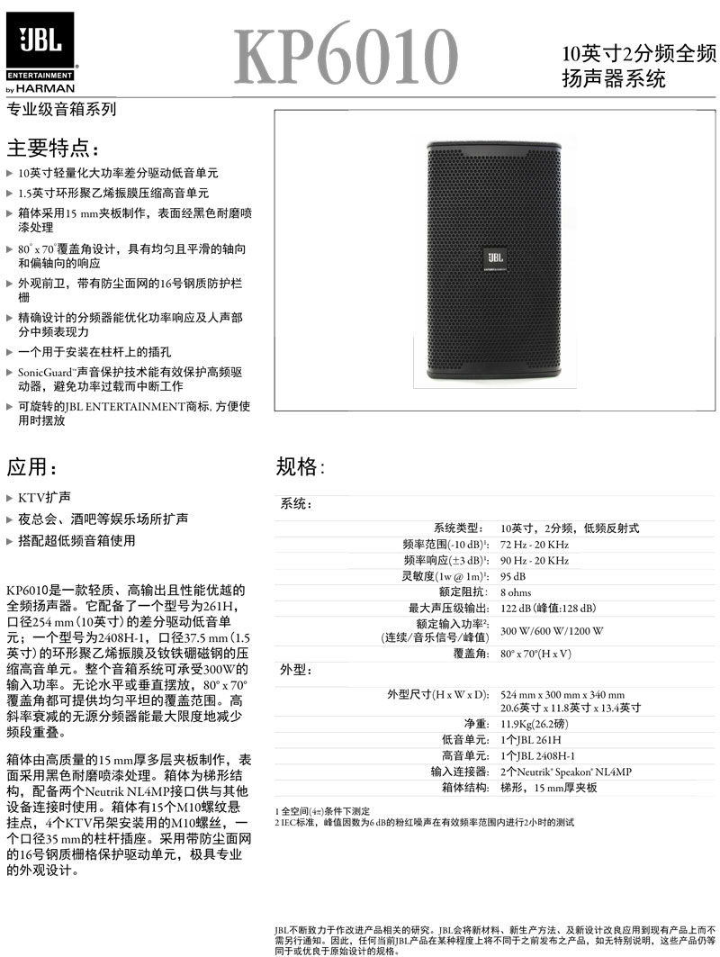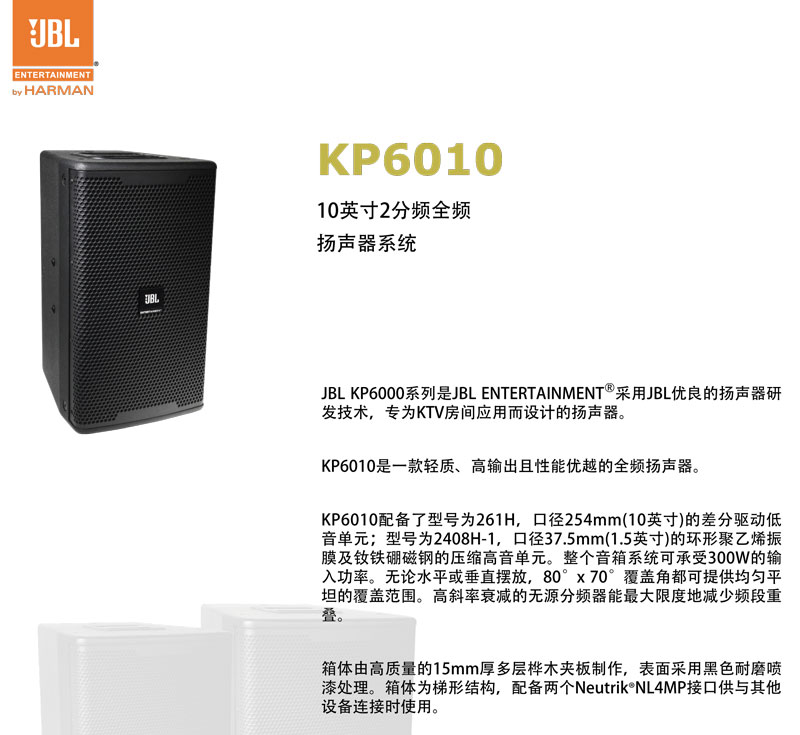 JBL KP6010 音响 10寸音箱 价格美丽 卡拉OK音箱 KTV酒吧 娱乐音箱 JBL扬声器KTV壁挂音箱 JBL会议音响 JBL专业音响 JBL娱乐音响 JBL代理商