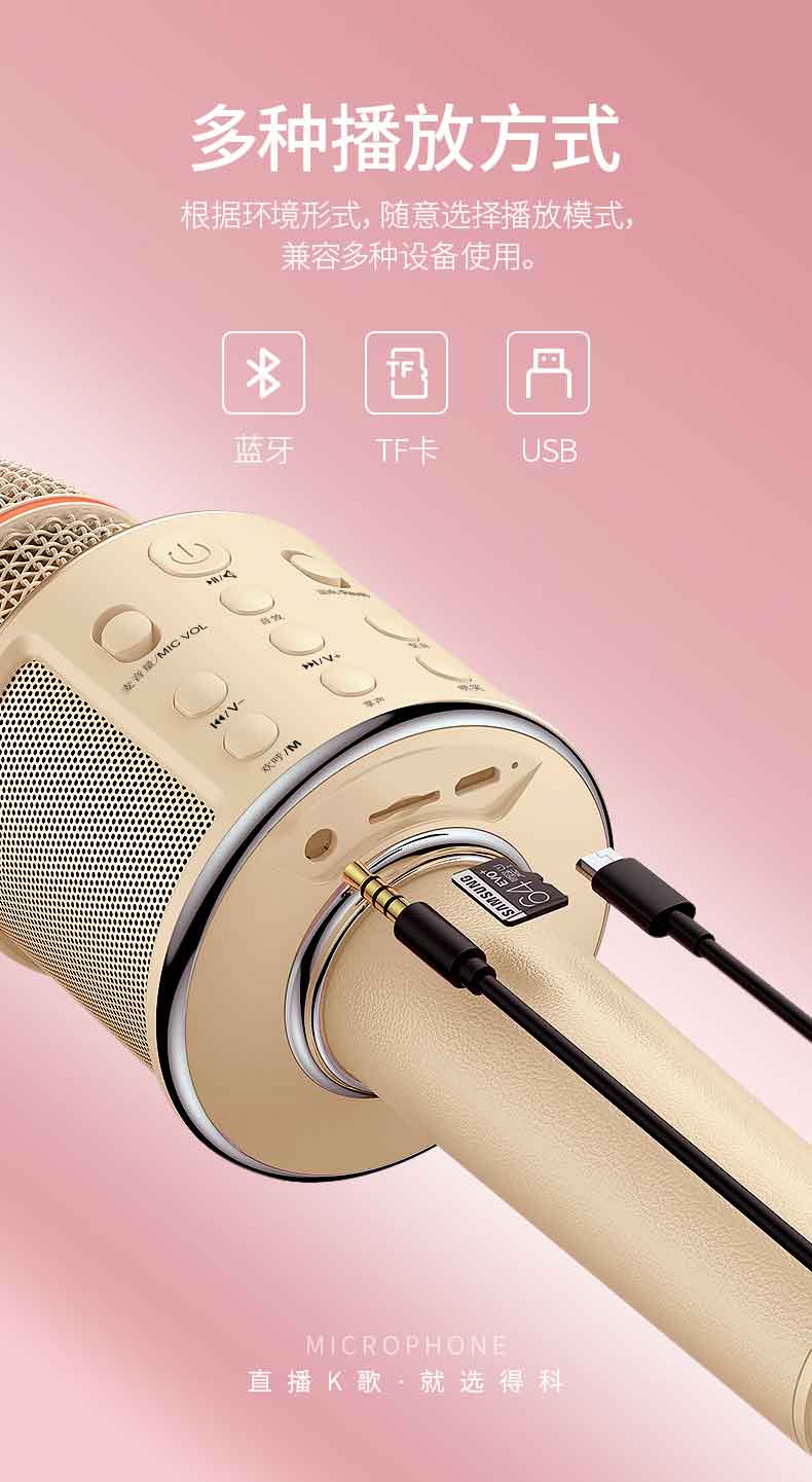 DK/得科 T1无线蓝牙K歌话筒 直播K歌麦克 手机直播声卡话筒音响一体机 得科声卡音频直播设备