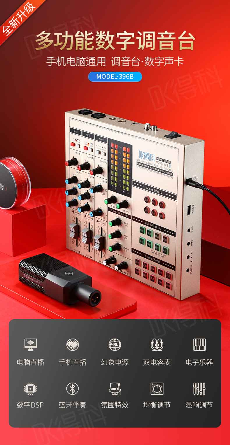 DK/得科 DK396B数字调音台 直播调音台 得科手机声卡音频直播设备 手机K歌直播声卡